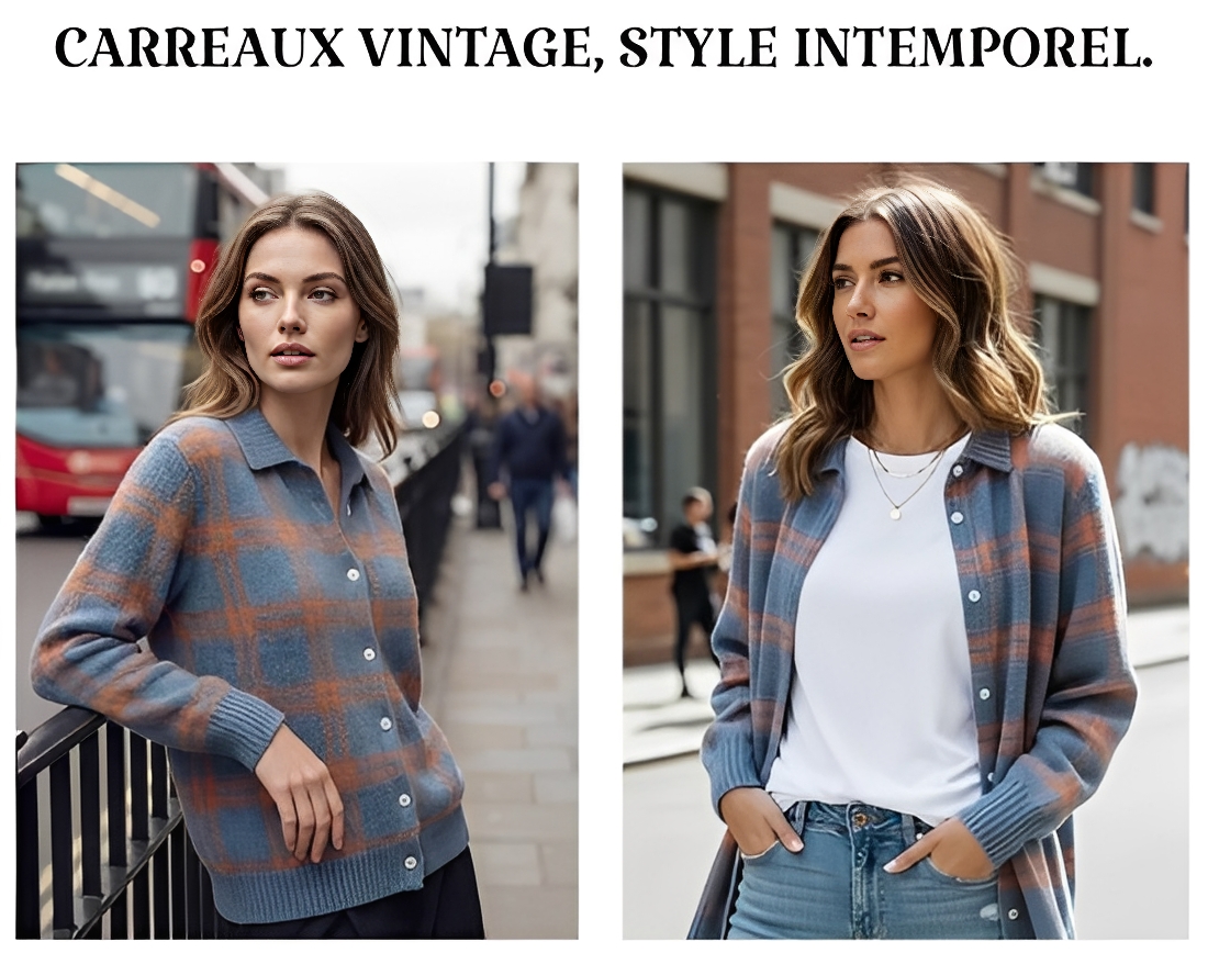 Un gilet à carreaux au style vintage revisité, pensé pour accompagner vos tenues de saison avec une allure raffinée et actuelle.