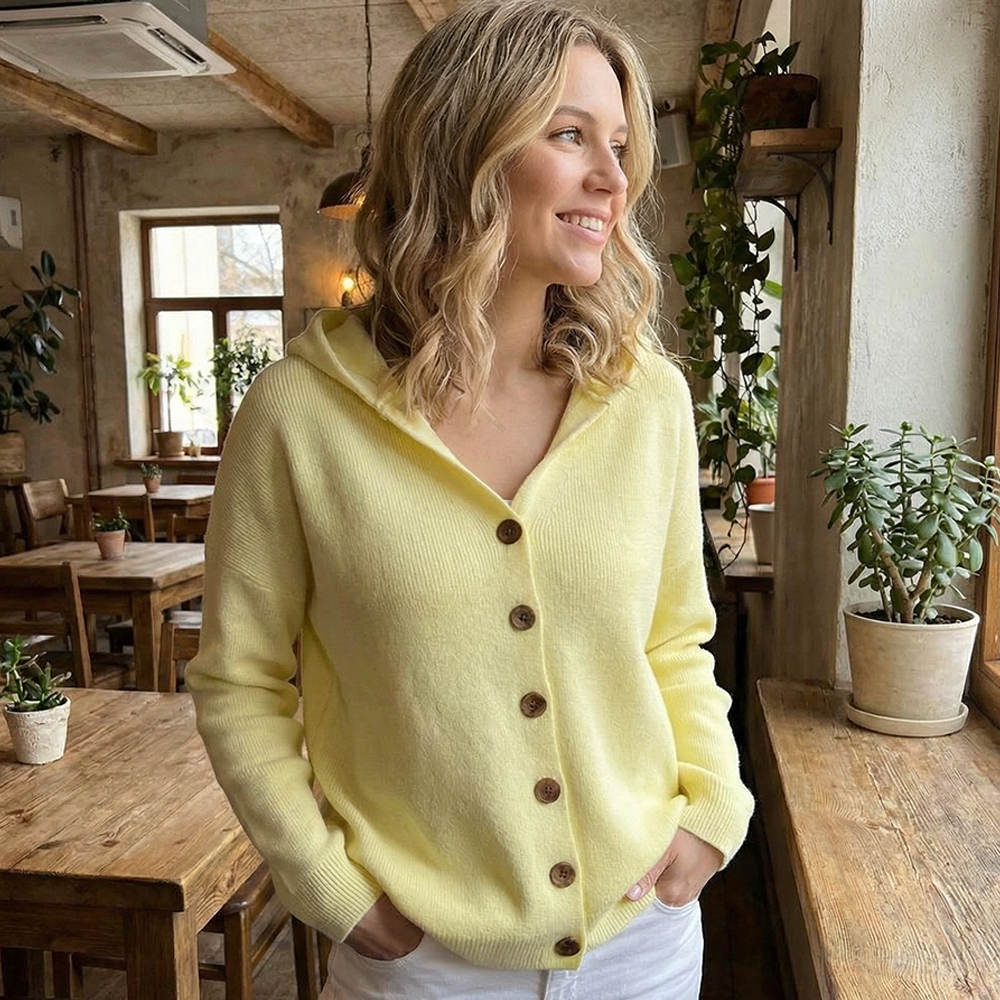Enveloppez-vous de chaleur et de douceur avec ce cardigan à capuche, conçu pour apporter une sensation de confort. Sa silhouette raffinée et son style polyvalent en font un choix apprécié, aussi bien pour des tenues décontractées qu'élégantes.