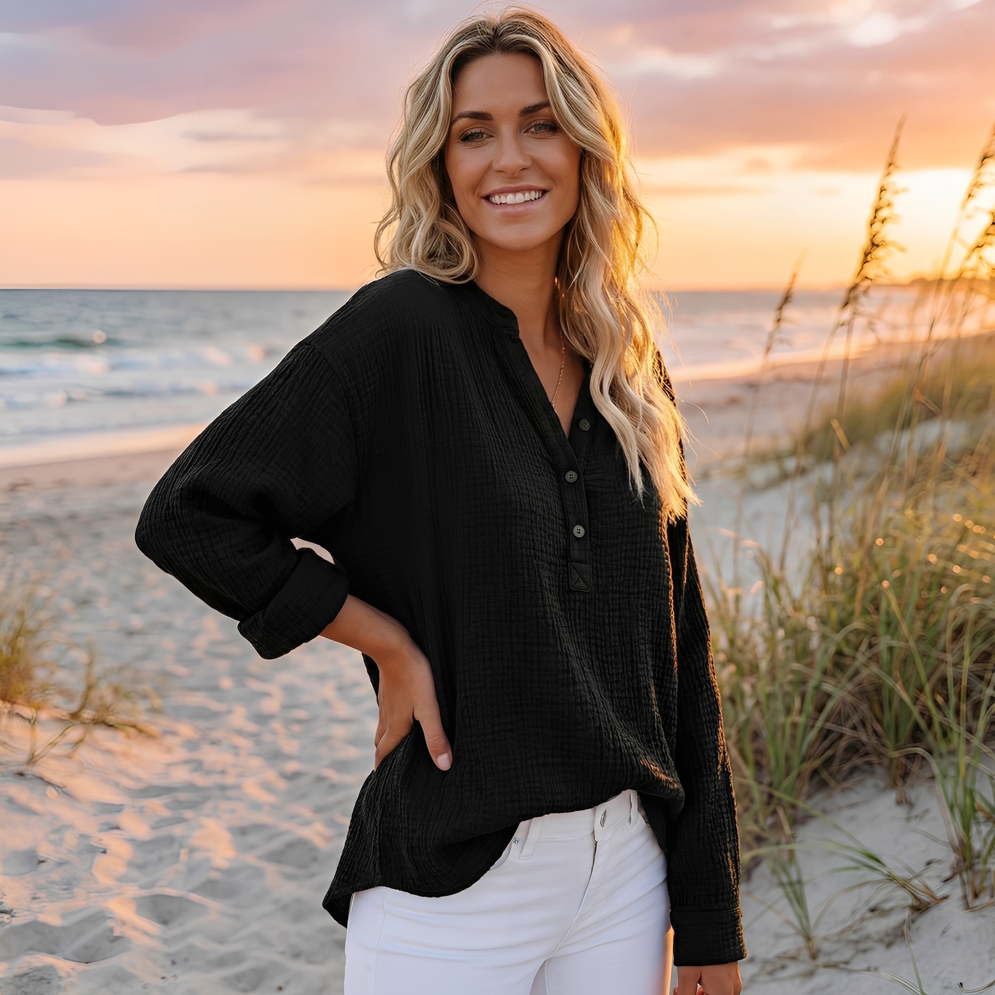 La Chemise Velnora™ s’adresse à celles qui recherchent une silhouette décontractée et une vraie liberté de mouvement.
