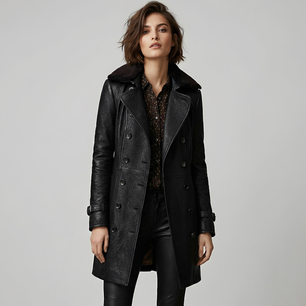 Manteau 3/4 Élégant en Cuir – Marie™