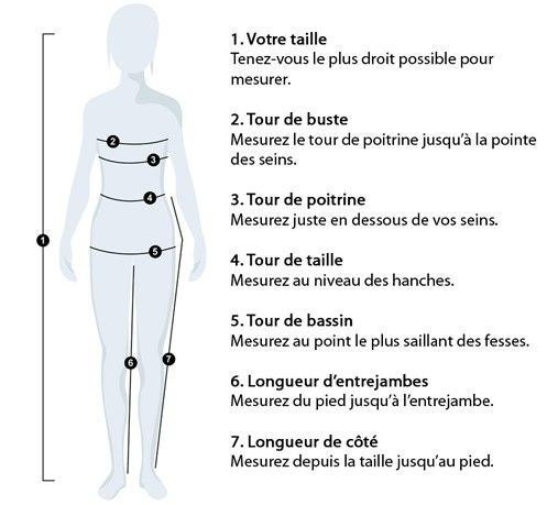 Le meilleur conseil que nous puissions vous donner est de consulter le guide des tailles (exprimé en centimètres) qui se trouve ci-dessous. Cela vous permettra de choisir la taille qui vous correspond le mieux en fonction de vos mensurations
