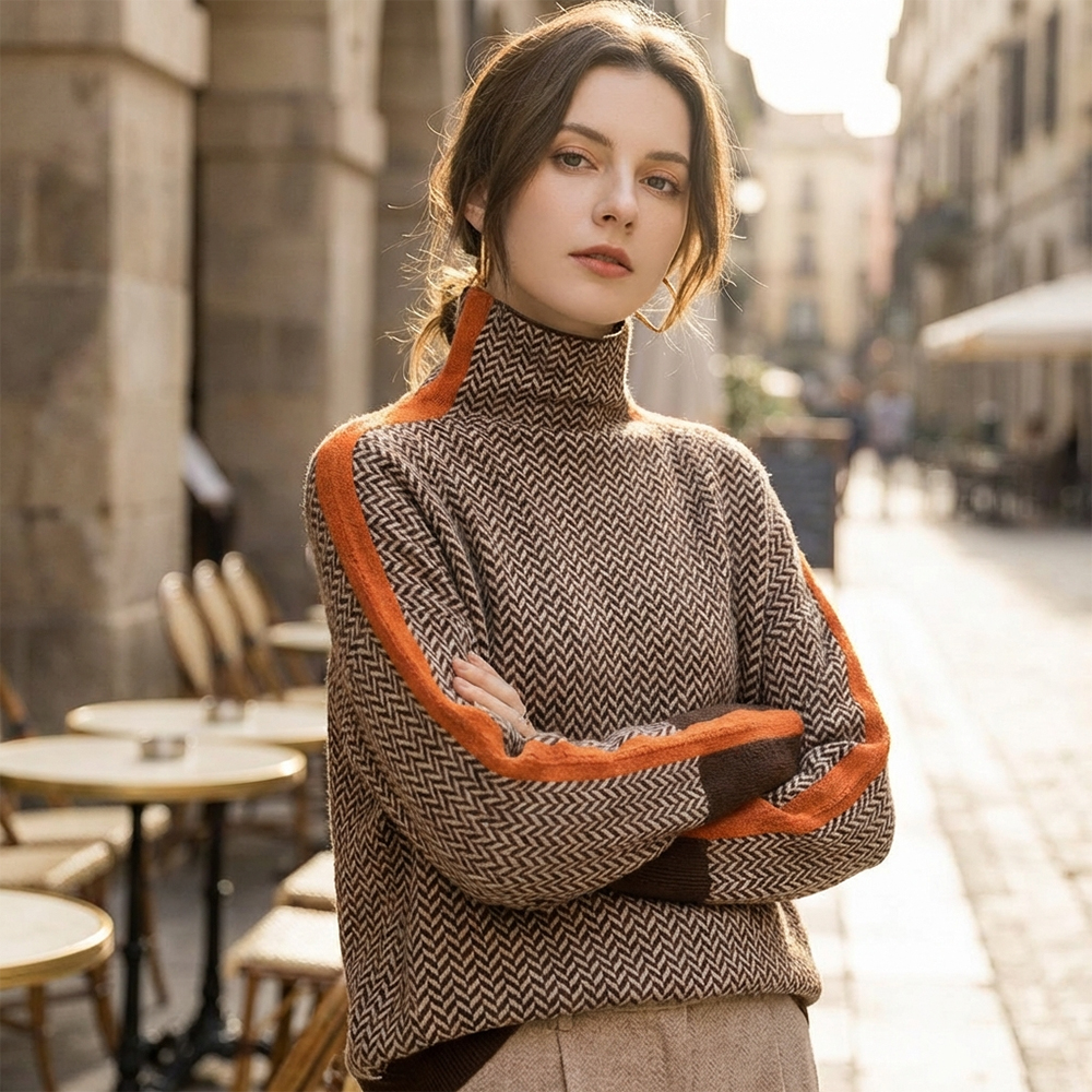 Pull Col Roulé à Chevrons de Luxe Eleanor™