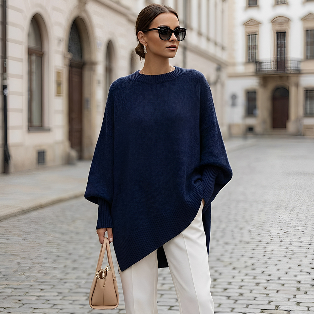 Coupe ample et fluide avec manches larges et ourlet allongé pour un style moderne.