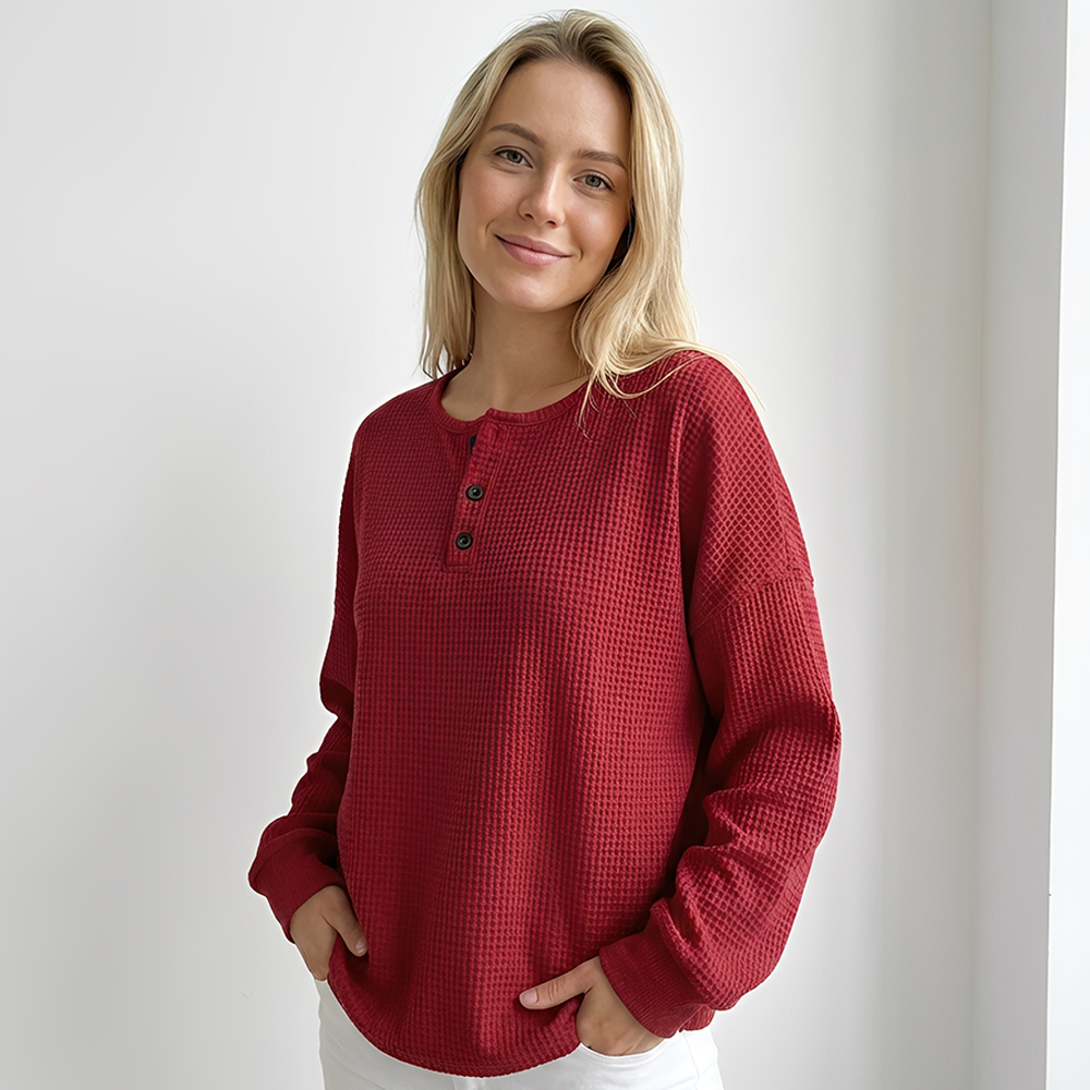 Sa délicate texture gaufrée suit les formes avec subtilité, tandis que sa coupe ample vous permet de bouger avec aisance et confort.